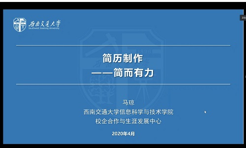 内部老师、校内老师、优秀学生、优秀校友等为学生们做讲座交流。为了让同学们提前做好就业准备,第一期讲座邀请了西南交通大学信息科学与技术学院党委副书记、副教授马琼老师为2018级澳门六合彩开奖直播