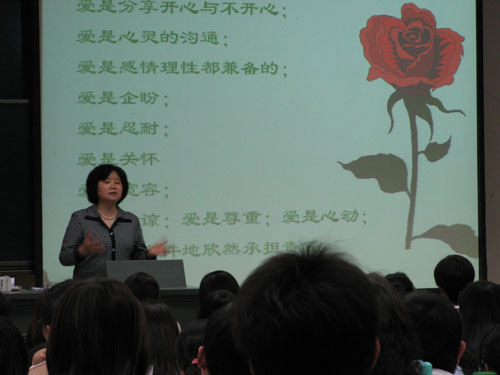 之邀来校做了两场报告,题目都是“恋爱心理”。