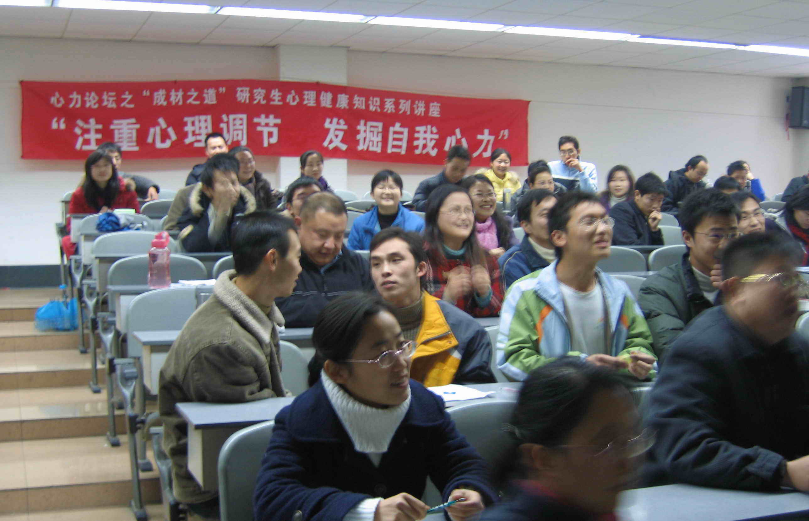 与和西南交通大学学生处联合举办,信息科学与技术学院和西南交通大学心理学会承办的“心力论坛”“成才之道”――研究生心理健康知识系列讲座《注重心理调节,发掘自我心力》的专题讲座正在进行。 为了举办这次讲座,特地邀请到了四川大学华西临床医学院医学心理学博士、现任西华大学心理科学研究所所长、心理咨询澳门六合彩开奖直播