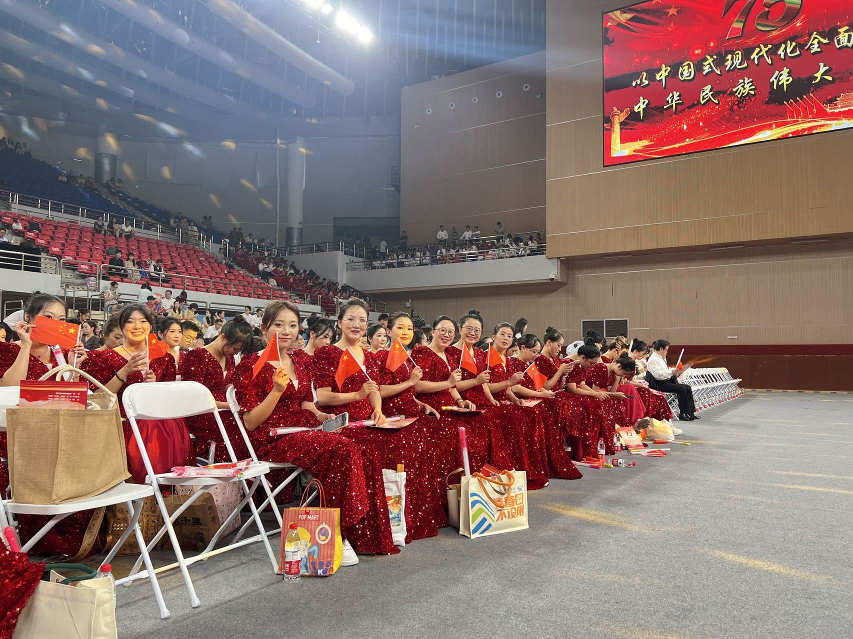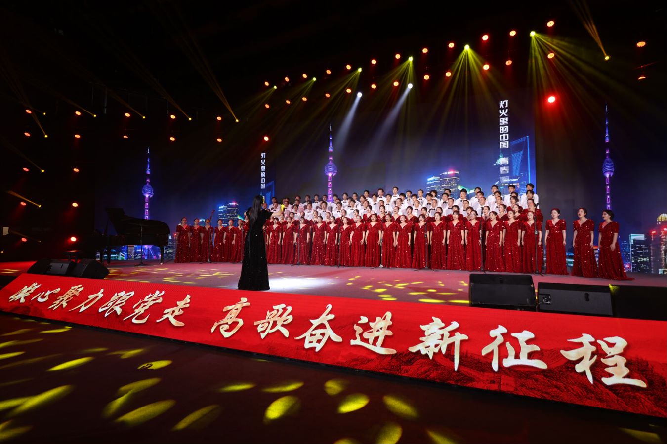 在舞台上,师生们以整齐划一的动作、饱含深情的歌声和饱满的精神状态,演绎了《灯火里的中国》这首经典的歌曲,用青春的热情和对祖国的热爱唱出了对新中国成立 75 周年来光辉历程的缅怀与歌颂,对伟大祖国繁荣昌盛的自豪与期许,也充分展现了全体师生团结奋进、积极向上的精神风貌。