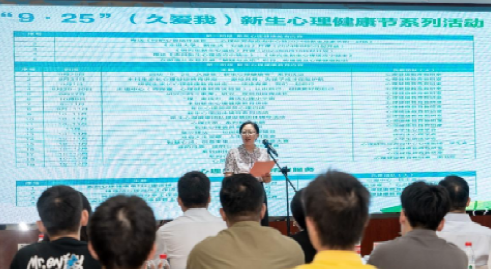 主任高雪梅介绍今年“9·25”(久爱我)大学新生心理健康节的工作安排,包括19项学生心理健康系列活动和4项教师心理健康系列活动;计算机与人工智能学院拔尖班学生郭昊洋同学代表全校新生发言,感谢学校对新生同学的关爱,一定会长久地关爱自己,努力向上成长。