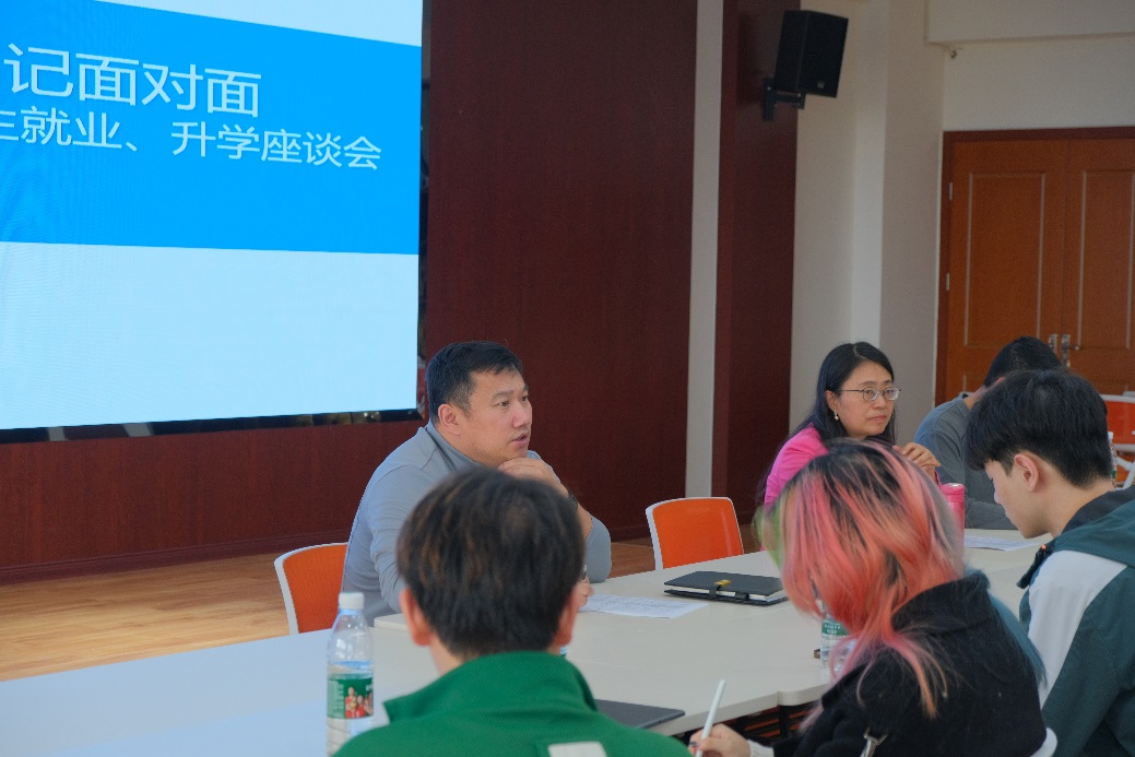 在X5501教室举办了“书记面对面——2025届毕业生就业、升学座谈会”。此次座谈会不仅是对2025届毕业生工作的一次重要推进,也是周末大型秋季招聘活动的动员会。