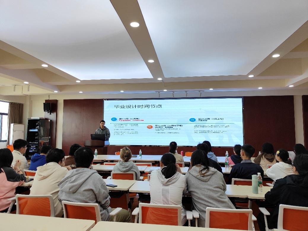 座谈会上,辅导员邹涛波首先动员同学们积极参与即将于周六举行的招聘会,并详细讲解了毕业设计的相关工作安排,为同学们的时间规划提供了清晰的指引。