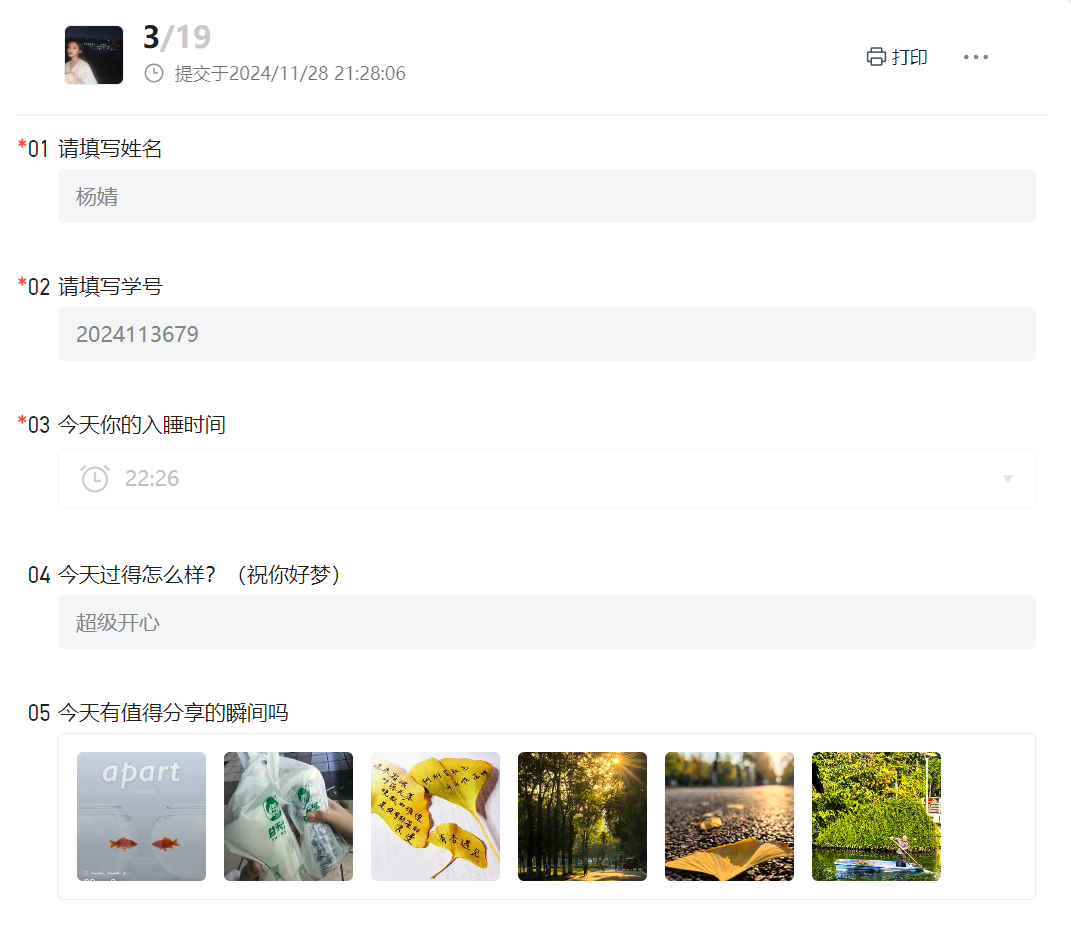 在21天的活动进程中,参与者借助线上打卡平台,每日分享自己的打卡成果与心得体会,克服最初的惰性与困难,从点滴小事中发现美好。无论是晨曦微露时的诵读、还是夜幕降临时的锻炼身影,无论是幸福瞬间的记录,还是按时睡觉的坚持,都彰显出交大师生对自我提升的不懈追求。