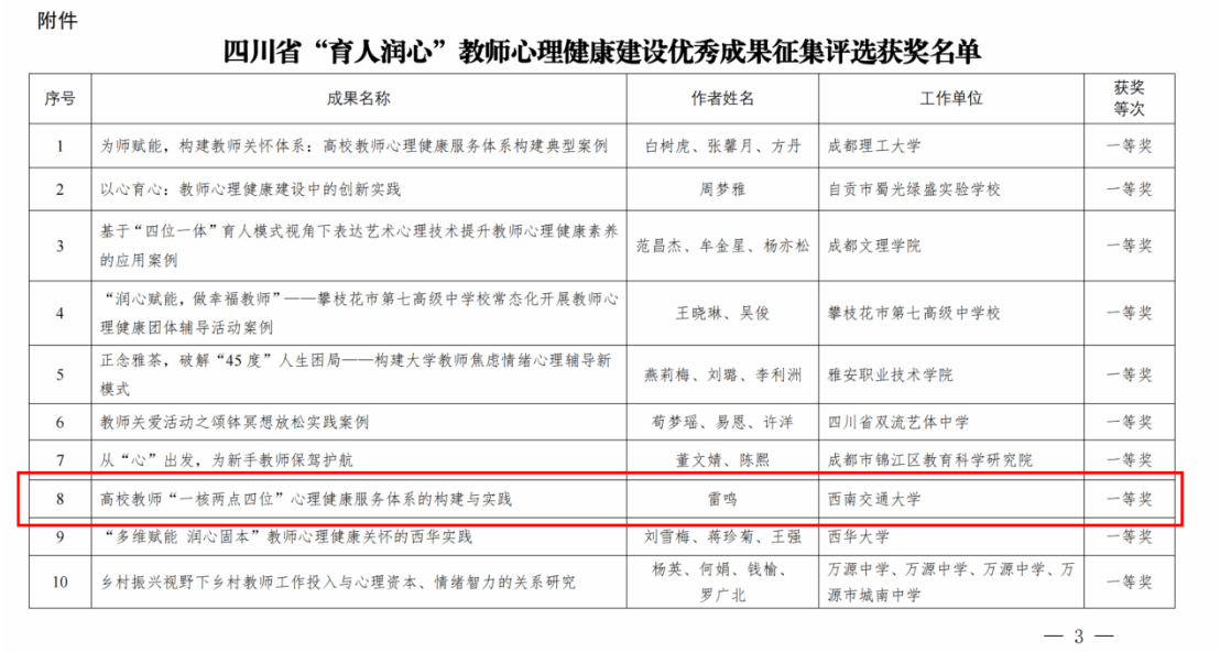 喜报!澳门六合彩开奖直播 教师在四川省“育人润心”新时代教师心理健康建设优秀成果征集评选活动中斩获三个奖项