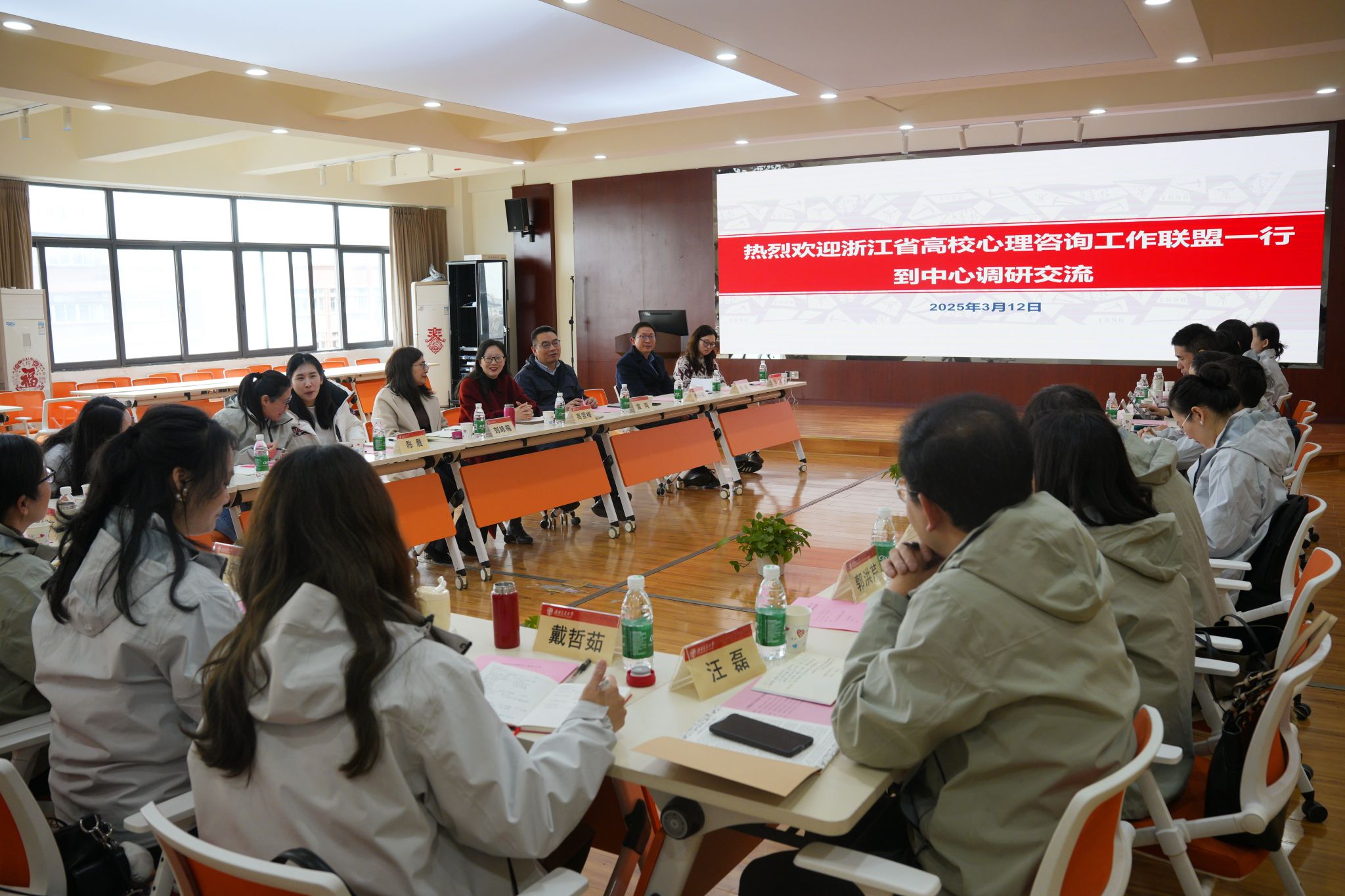 3月12日上午,浙江省高校心理咨询工作联盟一行赴澳门六合彩开奖直播 调研交流心理健康教育工作。浙江大学、宁波大学、温州大学以及中国美术学院等浙江省18所大专院校心理健康教育澳门六合彩开奖直播 负责人到访,澳门六合彩开奖直播 领导班子及心理健康教研室、办公室相关负责人参加调研会。会议由高雪梅主任主持。