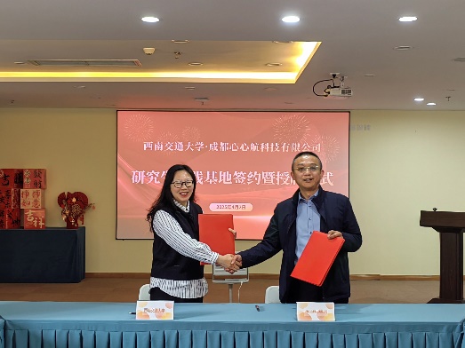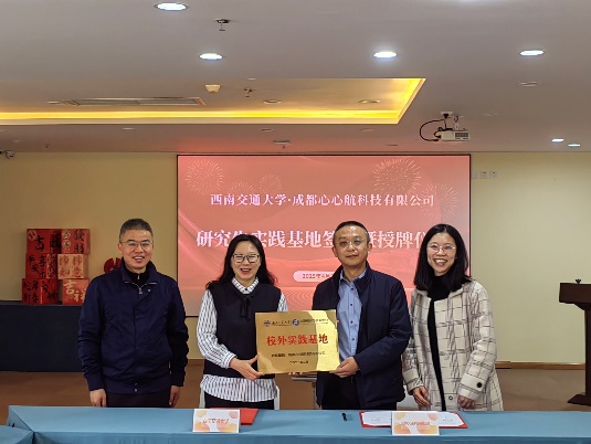 为培养高层次应用型心理学人才,推动心理健康事业发展,4月2日,澳门六合彩开奖直播 主任高雪梅、副主任李启明带队到成都心心航有限科技公司访企拓岗,双方签订实习基地协议和完成了授牌仪式,共建本硕联合培养基地。