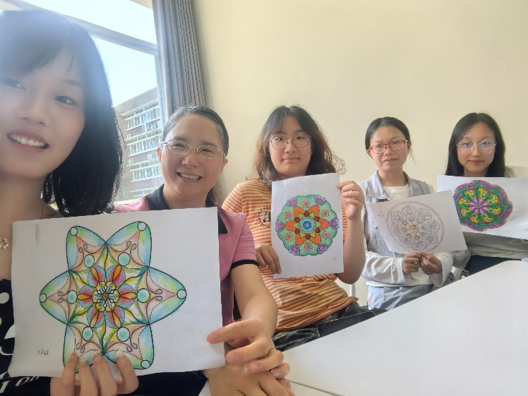 本次活动是学校心理健康教育“五位一体”体系的缩影。曼陀罗(Mandala)在梵语中意为 “圆轮”,是荣格提出的心理整合工具。研究表明,绘画过程能激活大脑边缘系统,降低皮质醇水平,缓解焦虑情绪。在本次曼陀罗绘画中,将美育与心理探索深度融合,帮助学生在艺术创作中实现“保护-凝聚-整合-超越” 的心理转化。