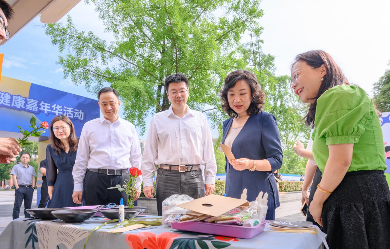 开幕式前,西南交通大学校长闫学东、蔡光洁一行到活动展区走访指导,参观典型案例展览、心理互动体验活动。