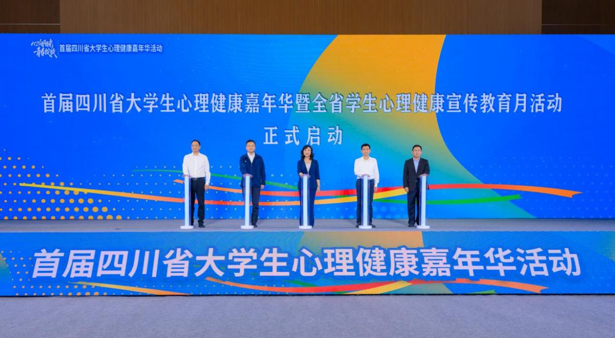 嘉宾代表共同启动首届四川省大学生心理健康嘉年华暨全省学生心理健康宣传教育月活动。