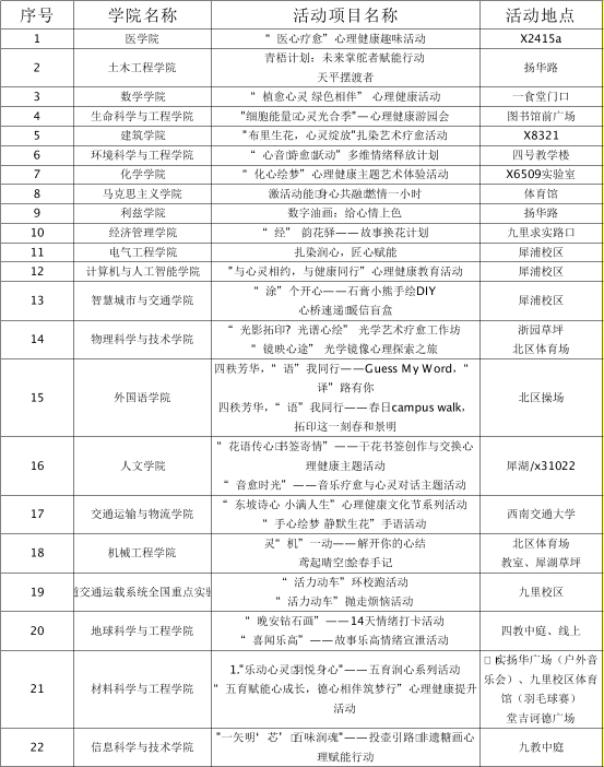 根据《西南交通大学全面加强和改进新时代学生心理健康工作实施方案》(〔2025〕9)文件精神,为突出我校“3·25(善爱我)”心理健康文化节的特色,促进29个学院(澳门六合彩开奖直播