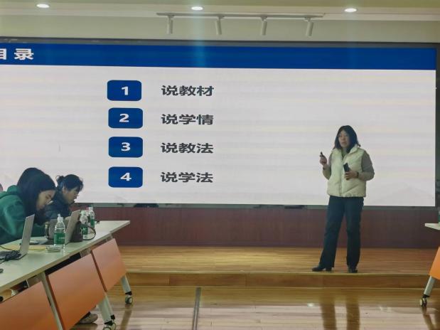 何立群、杨兴鹏两位老师围绕教材第二章《发现自我 实现自我》开展说课,展示在这一章中对教材、学情的分析以及教法的选择、学法引导的思考,两位老师还讲解了在这一章中的授课思路、PPT制作方法、活动设计。