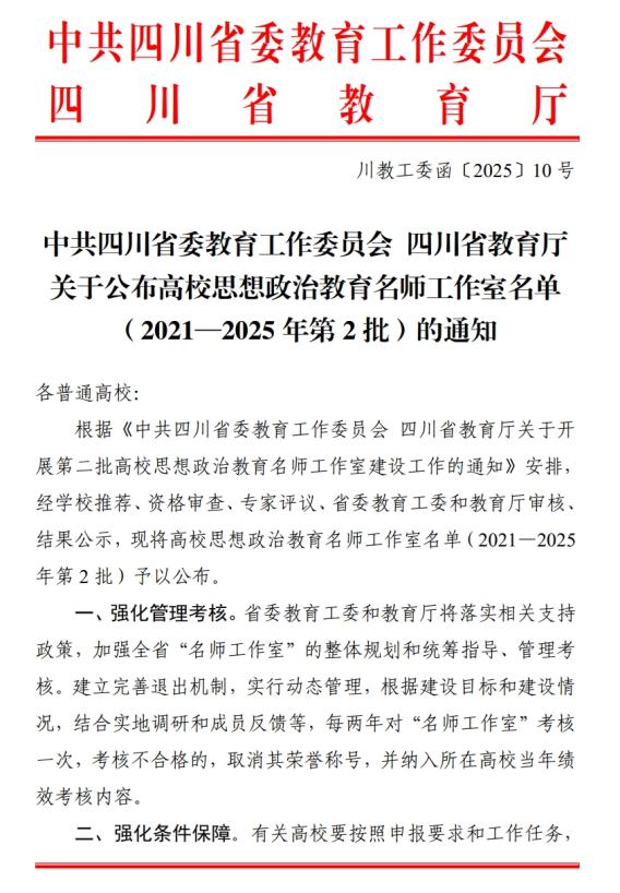 中共四川省委教育工作委员会、四川省教育厅公布了高校思想政治教育名师工作室名单(2021-2025年第2批),澳门六合彩开奖直播