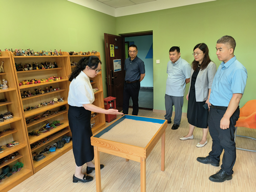 领导查看了咨询室的设施环境,详细询问了学生预约咨询、重点学生关注等工作。