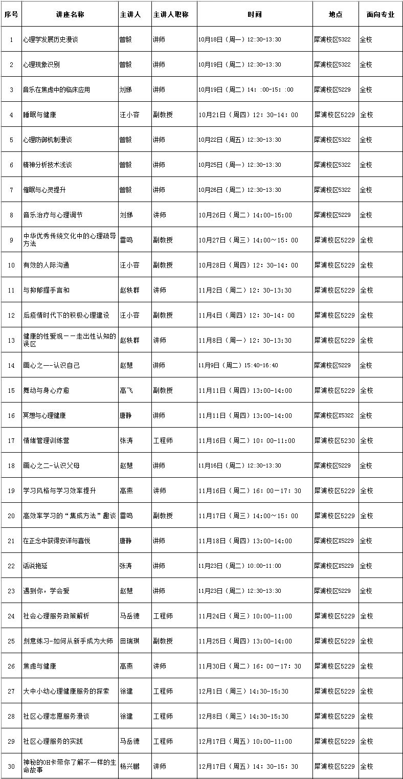 心理澳门六合彩开奖直播 2021-2022年第一学期创新讲座安排