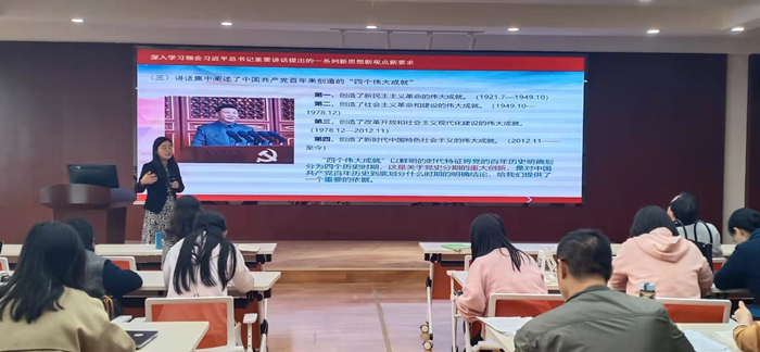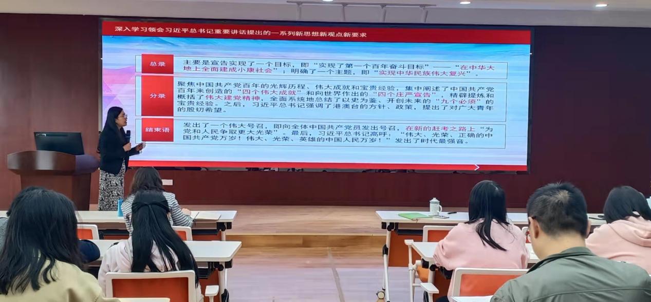 师生深刻把握伟大建党精神这个精神之源,紧密结合工作实际,不断深化对“七一”讲话精神的理解领悟,真正学深学透、融会贯通,立足个人岗位,在学思践悟中总结经验、观照现实、推动工作。青年学生要深刻领会“七一”重要讲话精神,用知识武装头脑,用思想指导实践,把伟大建党精神继承下去,发扬光大,为新的百年征程贡献自己的力量。