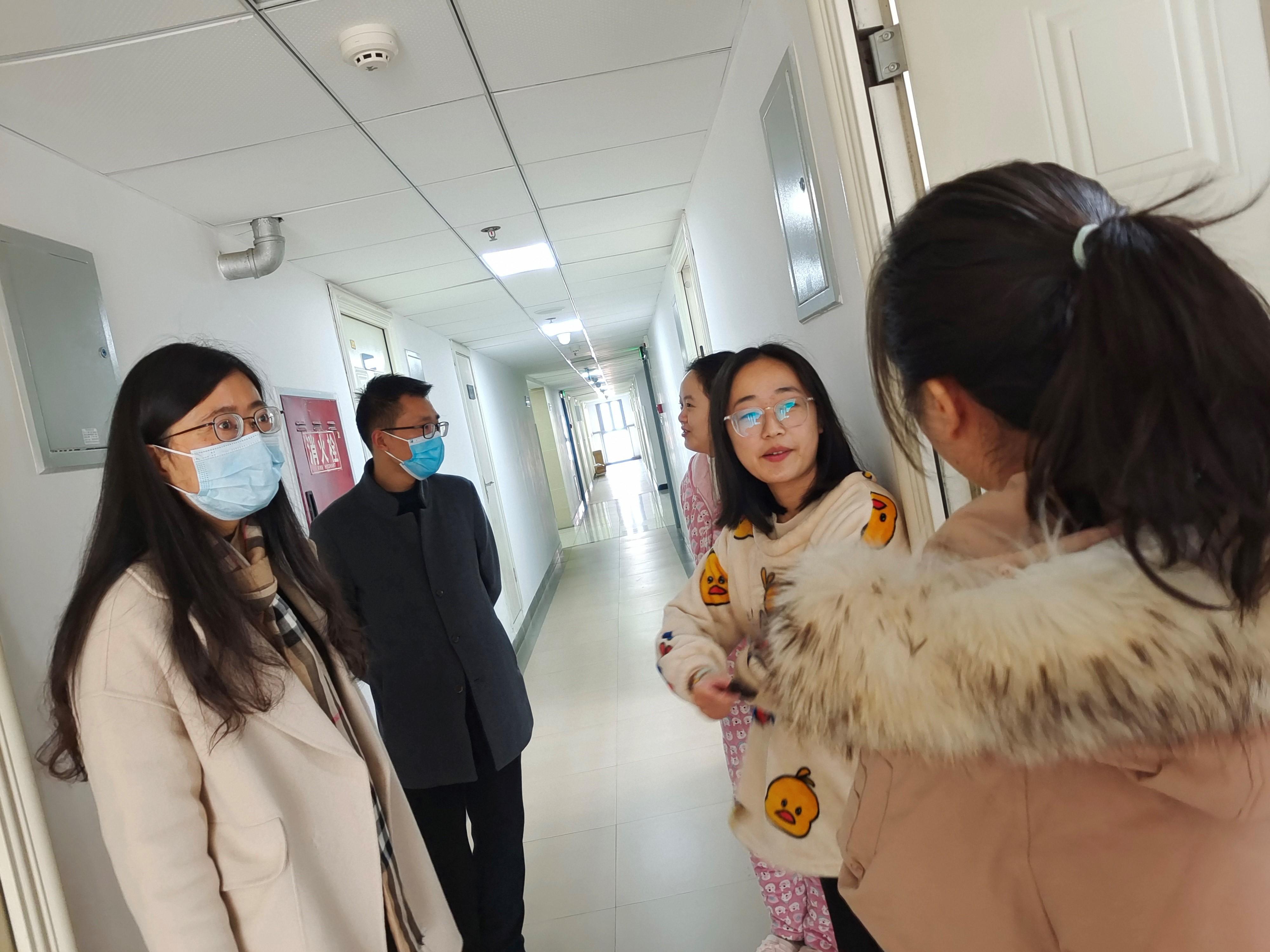 2021年11月12日下午,心理澳门六合彩开奖直播 直属党支部书记刘咏梅、副书记柯小君、毕业班辅导员樊菊老师,走访了毕业生宿舍,与本、研毕业班的同学进行交流谈心,了解毕业班同学的就业、生活和学习状况,并给与一定的关怀和帮助。