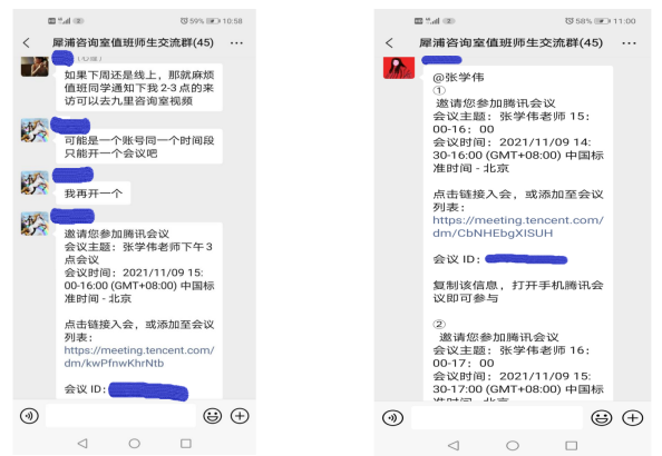 面对疫情,澳门六合彩开奖直播 咨询部及时启动疫情应急预案,迅速调整工作模式。从10月29日,开始启用线上咨询,咨询老师和来访者通过腾讯会议进行咨询。通过这种方式,可以让有需要心理帮助的同学能够及时进行咨询。这期间,根据学校疫情防控的相关要求,老师们行程小心谨慎,多次参加核酸检测,并克服在工作学习中的各种困难,保证咨询工作正常有序的开展。