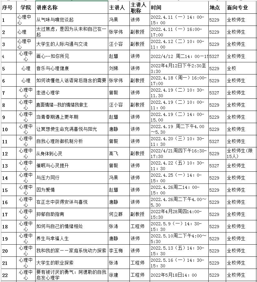 2021-2022学年第2学期创新讲座安排