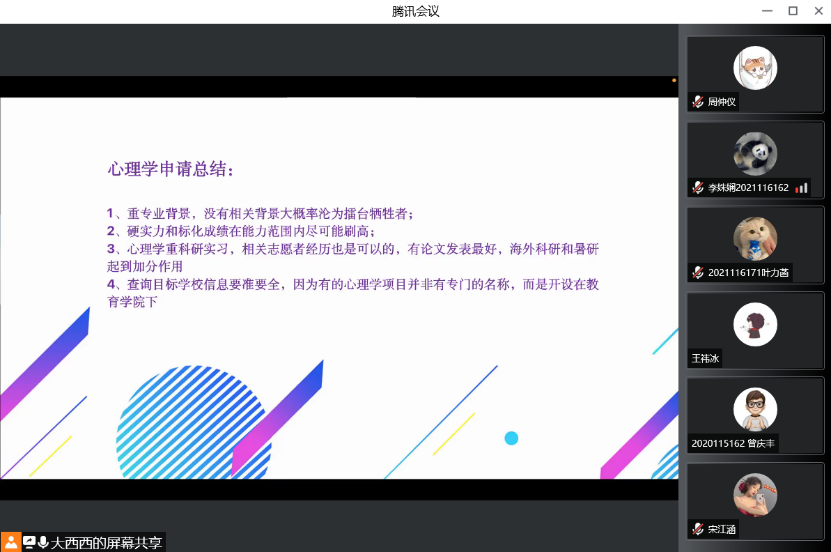 为进一步提升学生的国际化水平,增强学生对海外学习交流的机会和渠道的了解,澳门六合彩开奖直播 于2022年3月31日邀请新东方留学讲师王利莎为全体本科生分享心理学专业出国留学的相关情况。此次讲座在线上召开,应用心理学专业的学子积极参与。