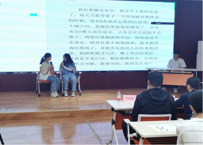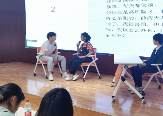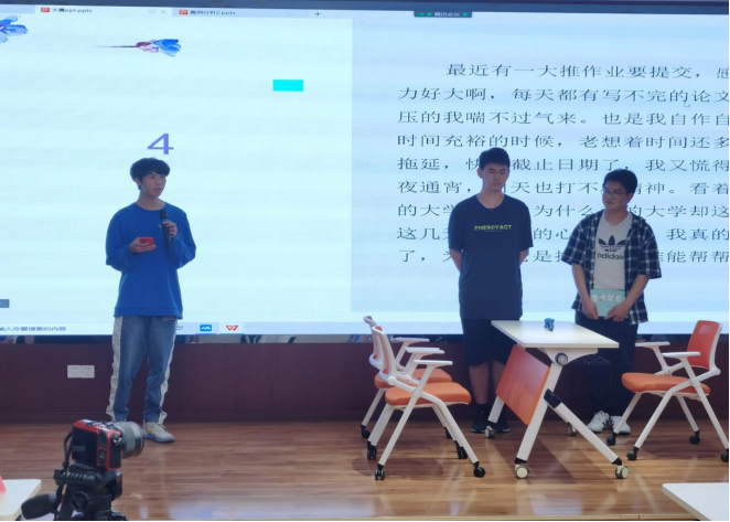 本次比赛选取和大学生活息息相关的事例,如对疫情的忧虑,对学习的焦虑,与舍友相处的矛盾,对拖延症的无奈。各参赛队伍通过演绎相关情景,以角色交流的方式,探讨这些心理问题的成因并提出相应的解决措施。观众在观看比赛的同时,也得到了一些心灵的启发,感知到朋友间相互治愈的温情。