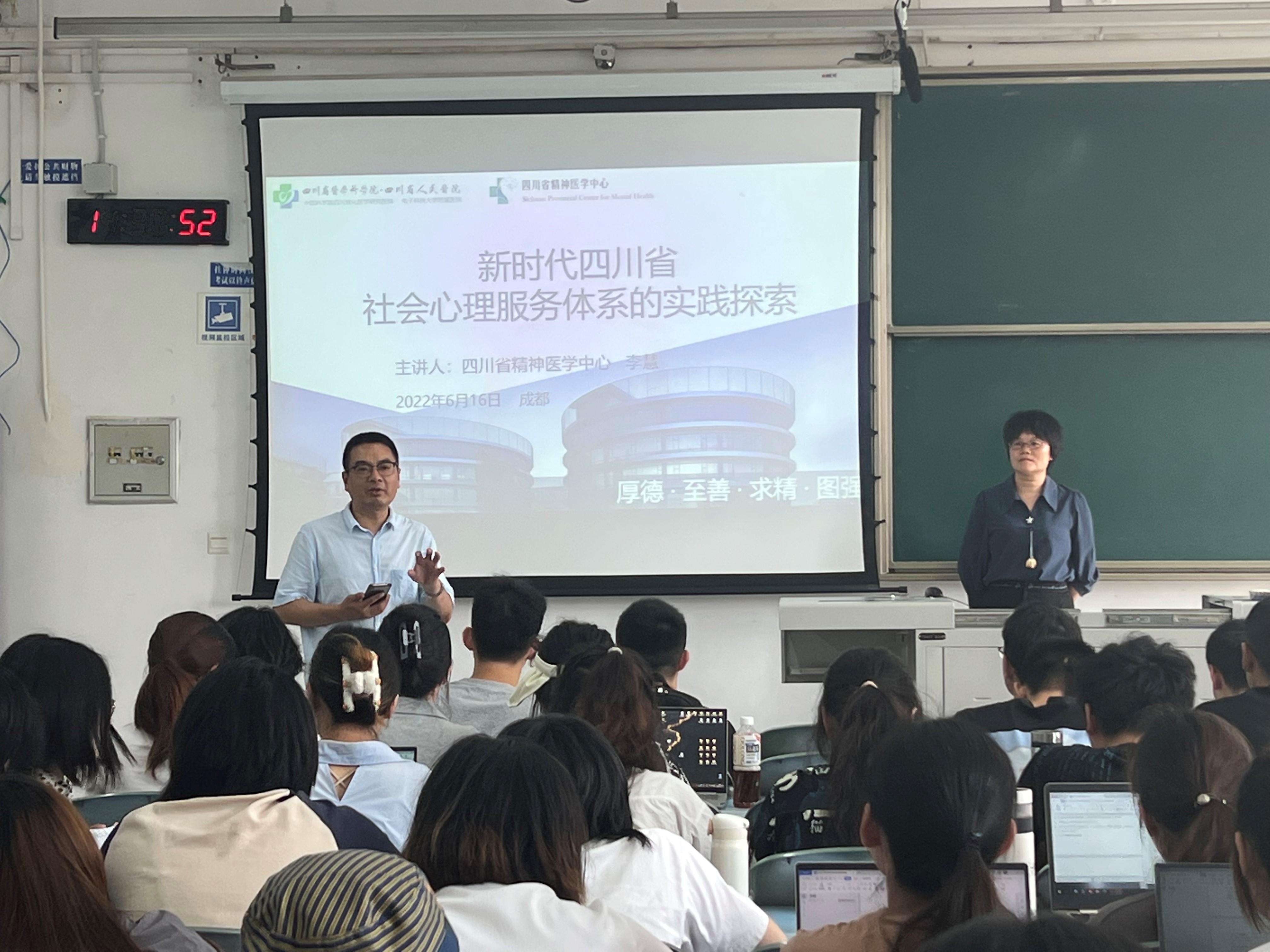 为2021级、2020级、2019级应用心理学专业本科生在犀浦校区2335举行讲座。李慧主任结合四川省社会心理服务体系试点城市绵阳、自贡以及自己的工作实践,为同学带来了题为《新时代四川省社会心理学服务体系的实践探索》。讲座由澳门六合彩开奖直播