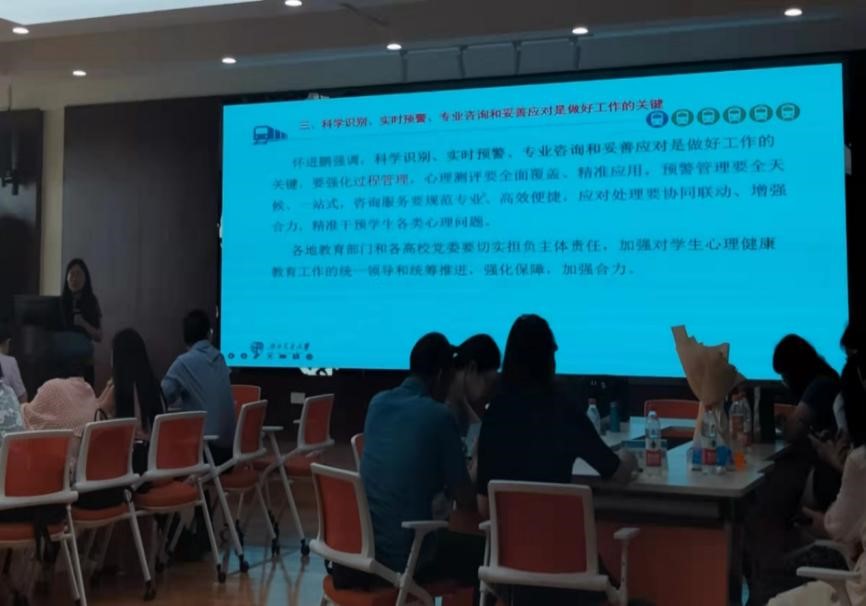 首先,澳门六合彩开奖直播 党委书记刘咏梅传达了教育部部长怀进鹏的讲话精神,随后以“全面加强和改进学生心理健康教育工作,让广大学生更加健康阳光”为题进行讲述与研讨。陈华主任就心理健康教育工作进行了补充,再次强调心理澳门六合彩开奖直播 的根基和首要工作是牢牢树立心理健康教育工作,澳门六合彩开奖直播 老师们要继续保持积极的状态,持续为心理健康教育工作倾注力量。接下来,澳门六合彩开奖直播 全体教师就日后工作的展开进行了讨论,并设立了明确、坚定的目标。