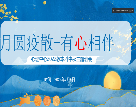 于9月8日19:00在腾讯会议召开中秋主题班会“月圆疫散,有心相伴”。本次会议由樊菊老师主持,得到了同学们的积极响应,近40名同学参加。