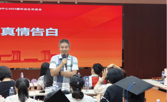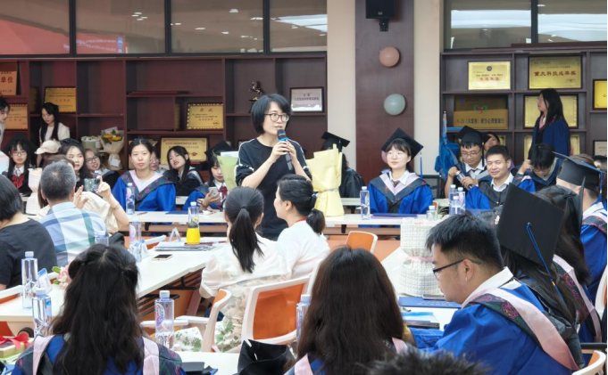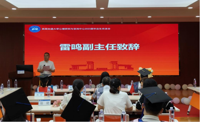 随后,教师代表冯缙、马淑琴、李启明、冉俐雯、冯果以及毕业班辅导员靳涵分别表达了对毕业生的祝愿。冯缙老师希望同学们在自己选的路上,不断的学习,大胆一点,松弛一些,自在热烈地踏上未来之路;马淑琴老师以一个狼和羊的寓言故事,希望同学们只想着一件事,明天要奔跑得更快;李启明老师祝愿同学们毕业快乐,以后幸福快乐;冉俐雯老师祝愿大家未来可期,人生很长,机会很多,慢慢走吧;冯果老师希望同学们悦纳自我,追求自我价值的实现。靳涵老师祝福同学们赤诚善良,爱人爱己。最后,刘咏梅书记希望同学们牢记交大精神,努力走好自己的路,去继续创造幸福人生,西南交大永远是大家的家,记得常回家看看!