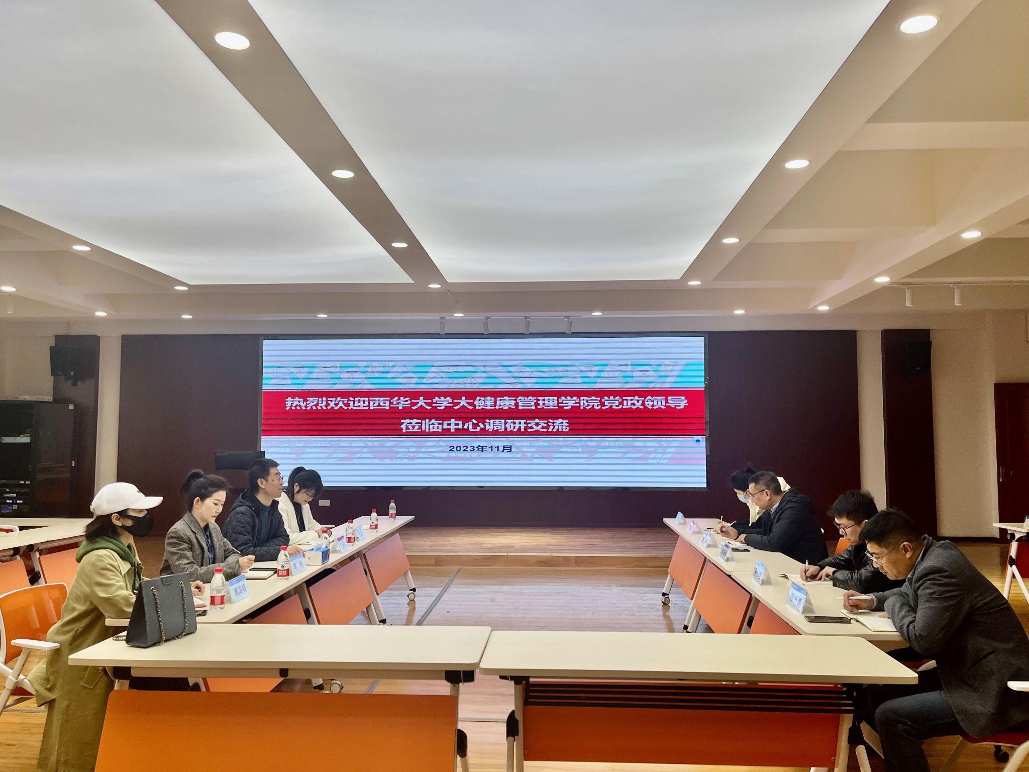 20231124日上午,西华大学大健康管理学院党政领导一行到澳门六合彩开奖直播 调研交流。澳门六合彩开奖直播 副主任(主持工作)雷鸣、党委副书记柯小君、咨询咨询室主任杨兴鹏、综合办公室主任陈晨、本科教研室副主任冉俐雯参加座谈会。