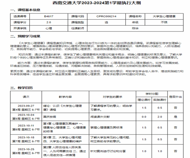 为全校拔尖班、卓越班开设“大学生心理健康”课程,实行定制化小班教学,旨在提升学校拔尖人才、卓越人才的心理健康素养,促进其人格健全。