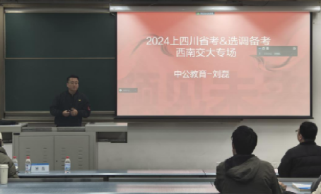 联合生命科学与工程学院于2023年12月11日晚七点,在西南交通大学犀浦校区X1215教室举办了一场线上线下结合的学思讲坛——公务员笔试备考指导讲座。此次讲座邀请了中公教育四川研究院院长刘磊担任主讲嘉宾。
