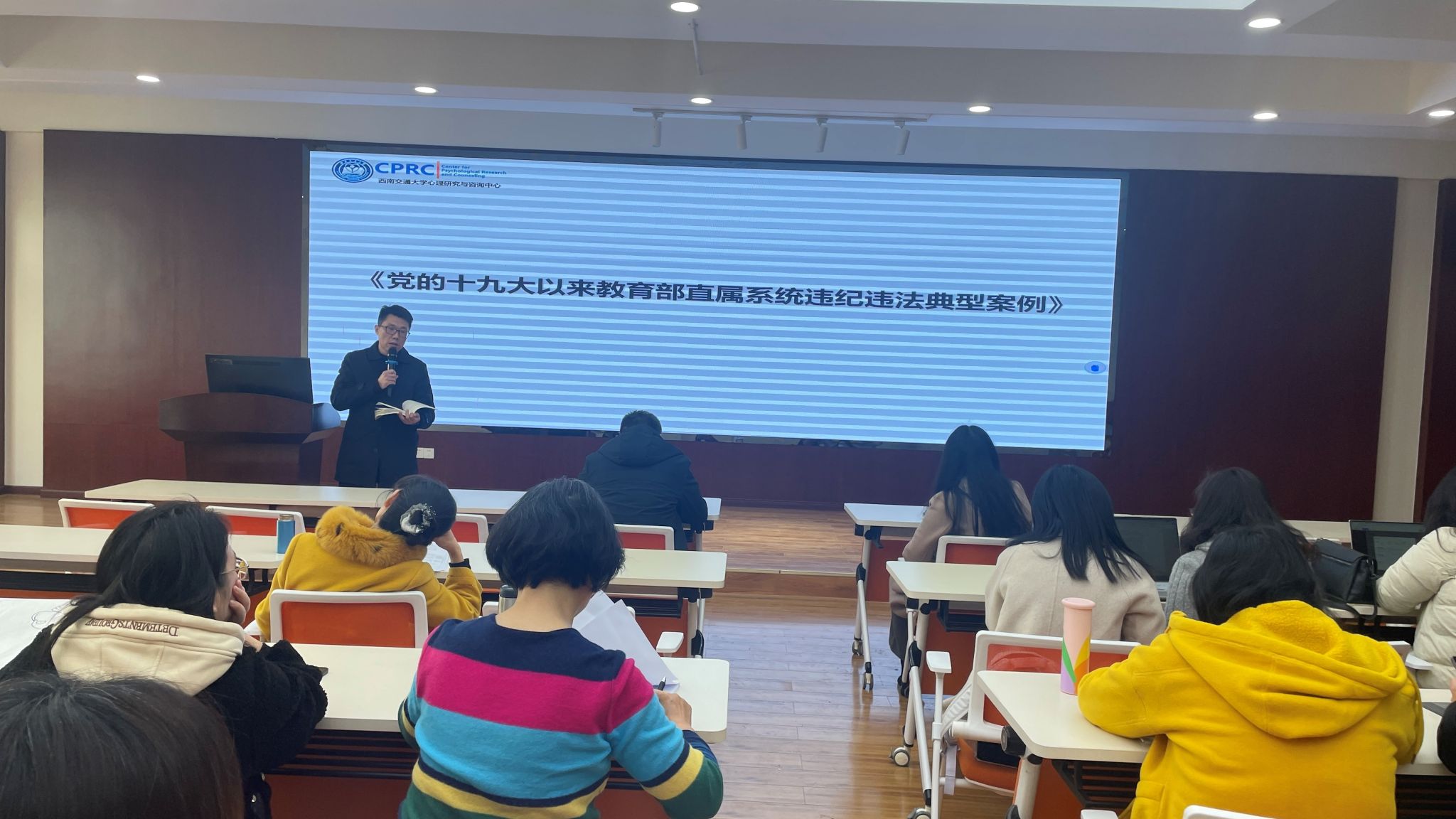 柯小君副书记组织与会教师一起学习了“党的十九大以来直属高校违法违纪警示案例”,他分别对违反党的六大纪律和中央八项规定精神的案例进行学习。柯书记指出,全体老师要以此为戒,吸取教训,不断强化党纪政纪和法律法规意识,切实筑牢思想防线、守住廉洁底线,时刻自省自警。
