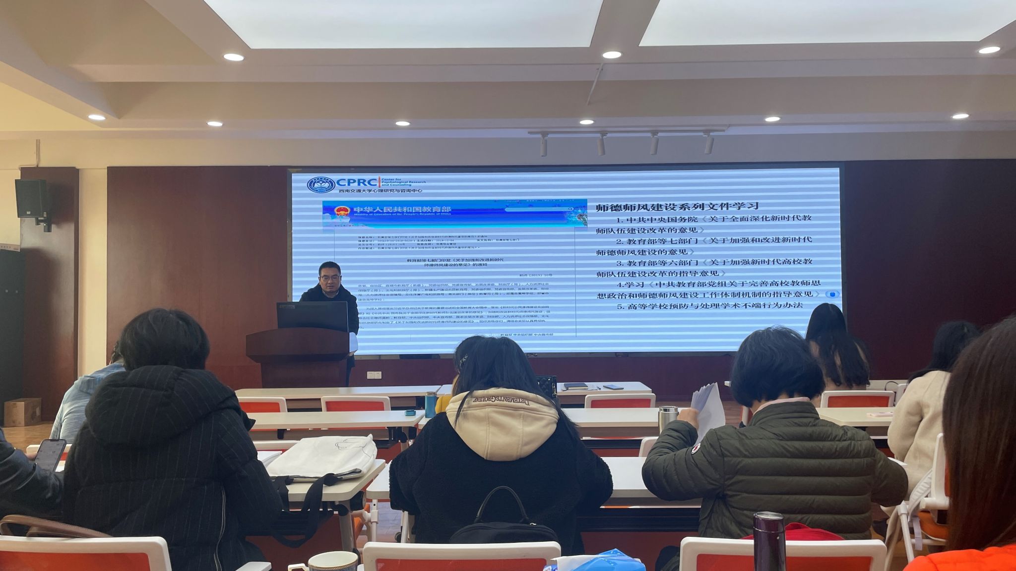 2023127日下午,澳门六合彩开奖直播 在5501开展业务学习,会议内容主要围绕师德师风专题学习、违纪违法典型案例警示分享以及近期教学与咨询相关工作情况通报等。澳门六合彩开奖直播 全体教职工参加,副主任雷鸣主持学习。