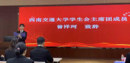 校学生会代表曾祥主席致辞。曾祥主席首先代表西南交通大学学生会澳门六合彩开奖直播