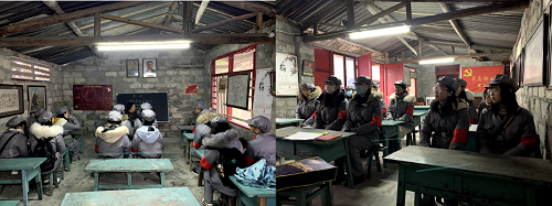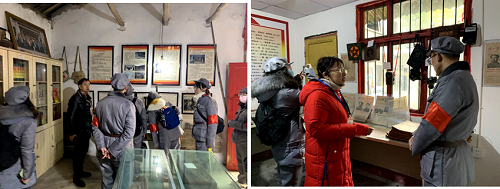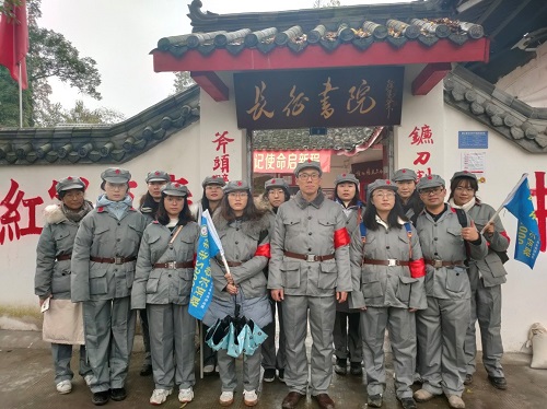 为了更加深刻体会长征精神,党员同志们都换上红军军装,在讲解员的带领下,参观了党史文化墙、红色新闻史料馆、耕读传家馆、长征文史博物馆、红色文献库等。一张张珍贵的历史图片、一册册记录中共党史军史的红色书籍、一份份详实的文献资料,大家仿佛又回到了那艰苦卓绝、生死存亡的峥嵘岁月,真切感受到了长征期间广大红军战士的英勇战斗和前赴后继的革命精神。面对红军先烈的遗物和英勇事迹,全体党员在柯老师的带领下面向党旗庄严宣誓,重温自己入党时做出的庄严誓词。誓言如山,掷地有声。