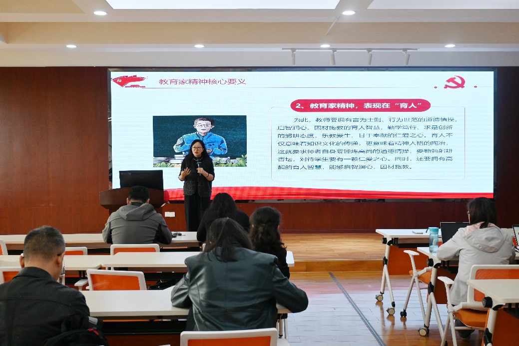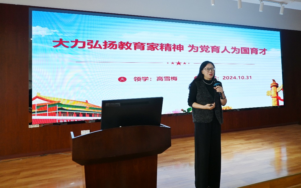 高主任的讲解逻辑严密,既有理论深度,又具实践指导意义,赢得了在场教职工的热烈掌声。会议最后,刘咏梅书记作总结发言,她号召全体教职工以本次学习为契机,将教育家精神内化于心、外化于行,共同努力,为培养更多担当民族复兴大任的时代新人贡献力量。