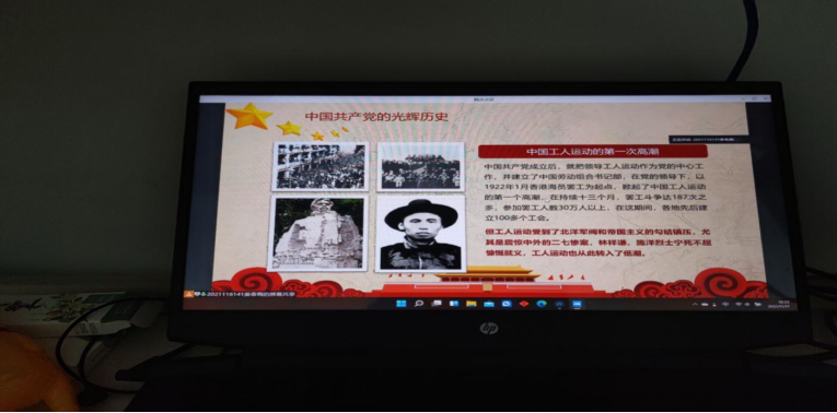 最后,同学们共同观看《解码百年大党》视频。这个视频加深同学们对于党史的了解,对于未来前程的思考,使同学们对中国共产党有更进一步的了解,对新时代如何实现中国梦有更多的思考。
