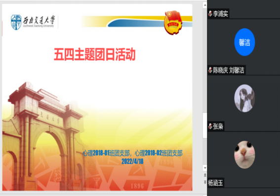 心理澳门六合彩开奖直播 各团支部于2022年4月29日上午通过腾讯会议,分别召开了五四主题团日活动,由各团支部团支书主持,全体团员参加。