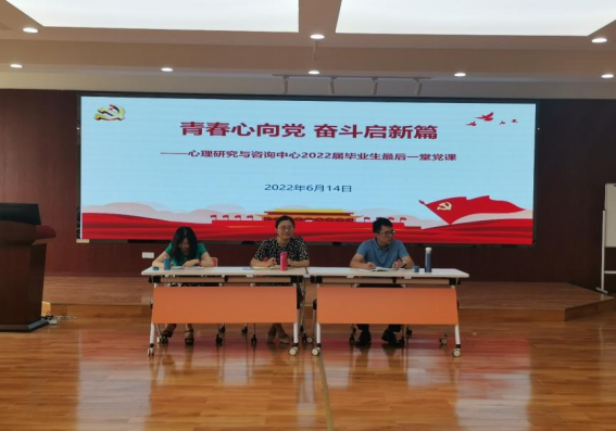 于2022年6月14日开展了以“青春心向党,奋斗启新篇”为主题的2022届毕业生党员最后一堂党课暨座谈交流会。心理澳门六合彩开奖直播
