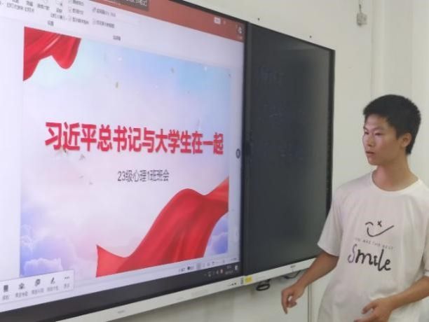 主题班会由辅导员老师指导,提供学习资料,班委组织,同学们一起以观看学习、研讨等的方式进行。各班同学认真学习了习近平总书记关于高等教育改革发展稳定系列重要指示批示等重要内容。习近平总书记的重要讲话,阐释了建设教育强国的重要意义,指明了教育强国建设的前进方向。习近平总书记心系大学生,多年来在重要时间节点给多所大学、师生写回信,鼓励大学生求得真才实学,积极投身强国实践,为全面推进中华民族伟大复兴提供有力支撑。