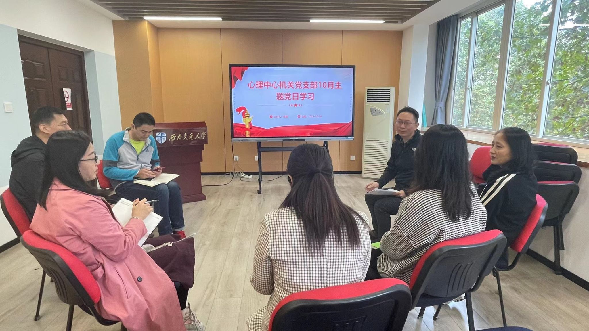 为深入学习贯彻习近平总书记系列重要讲话精神,全面提升基层党建工作制度化、规范化,进一步强化政治纪律和政治规矩,2023年10月26日上午,心理澳门六合彩开奖直播 机关党支部在X5229开展主题党日学习,此次学习由机关党支部书记徐建领学。