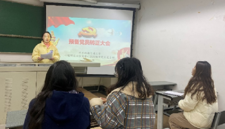 2023年12月15日上午12点,澳门六合彩开奖直播 2023级研究生党支部在西南交通大学九里校区逸夫馆召开预备党员转正大会,此次会议严格按照组织程序召开,由党支部书记杨谨主持,党支部全体党员参会。