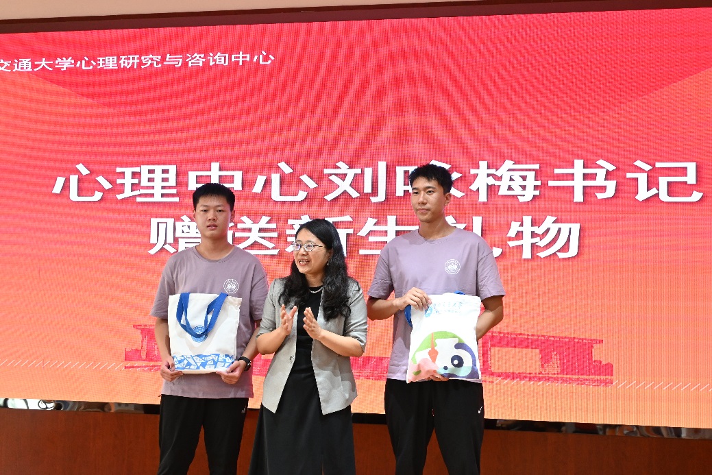 最后,在热烈的掌声中,刘咏梅书记向新生代表们赠送了精心准备的开学礼包。礼包内含有精心定制的充电宝、文化衫、雨伞、钥匙扣、花露水和新生心理健康手册,这份礼物仅承载着澳门六合彩开奖直播