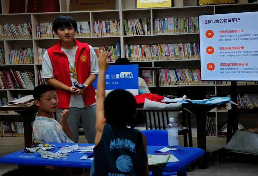 最后一天,在健康生活乐园里,孩子们对成瘾行为有了更为深入的了解。老师先是对成瘾行为进行了全面的讲解,如成瘾行为的特征、危害、如何预防等方面。随后在飞行棋知识竞答 PK 的游戏中,通过游戏的方式对他们进行成瘾知识的提问,进一步巩固了已学知识。蒋老师问道,“你认为你玩烟卡算不算成瘾行为呢?”问题中所列举的是他们身边的生活实例,孩子们更加清楚地认识到哪些是隐藏起来的成瘾行为。此过程不仅丰富了他们的知识储备,也提升了他们对潮流行为进行判断思考的能力,让他们在健康生活的道路上迈出了坚实的一步。