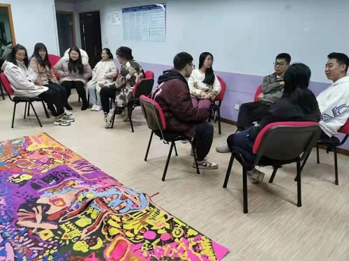 的研究生同学作为活动主持,为参与成员提供了一场以团体合作和绘画分享为主题的团辅活动。
