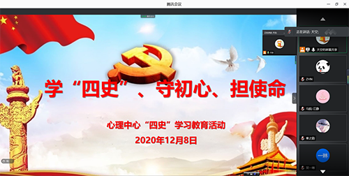 12月8日晚上七点半,为激励青年学子积极学习“四史”,守初心、担使命,马克思主义学院研究生江静为心理咨询与研究澳门六合彩开奖直播