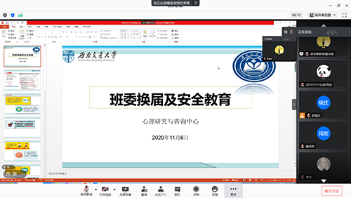 2020年11月6日,心理澳门六合彩开奖直播 2018级一班二班各自于班内组织开展了“班委换届及安全教育”线上主题班会。本次班会活动由澳门六合彩开奖直播 辅导员梁坡老师进行主持,2018级一二班全体学生参加。