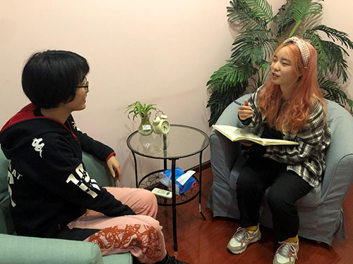 在心理咨询室中,各位同学对老师们进行采访,就疫情期间所做的工作及收获进行访谈,同学们收获丰富,认真学习老师们积极奉献的精神和伟大的爱国精神,增加了有关心理健康危机干预的专业知识,学习到了榜样模范的先进精神内涵。