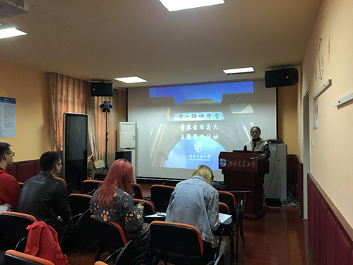 活动开始,团支书谢杭琦首先给同学们介绍了学校的发展历程,从“山海关北洋铁路官学堂”到“邮传部唐山路矿学堂”,再到现在的“西南交通大学”,学校的荣誉一直闪耀,这些光荣而伟大的岁月,那些将荣誉一直传承的优秀校友们,激起了同学们的在这片充满历史的土地上努力学习的热情。然后,团支书谢杭琦给同学们介绍了学校的学科建设以及科研情况,并播放了一个关于学校综合情况的视频,让同学们对学校有了更具体、更全面的认识,鼓励同学们好好学习,将来成才后不忘推动母校建设。